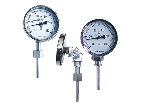 双金属温度计是基于绕制成环性弯曲状的双金属片组成。一端受热膨胀时,带动指针旋转,工作仪表便显示出所应的温度值。
