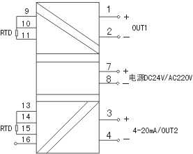 单路热电阻输入-单/双输出 双路热电阻输入-双输出 |