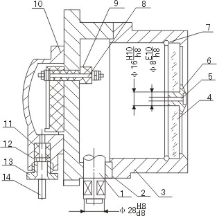 13、压紧螺栓 14、引入导线(四芯电缆) 15、圆柱头内六角螺钉 16、圆柱头内六角螺钉