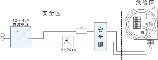 | 电源:24V·DC;无负载时变送器可工作在12V·DC,最大为40V·DC。 负载特性:输出信号:4~20mA 负载阻抗R与电源电压V的关系:R≤50(V-12)Ω 量程和零点:打开接线端侧盖后连续可调,零点调整范围为最大量程的±5%,量程调整范围为最大量程的40%~ 100%。 |